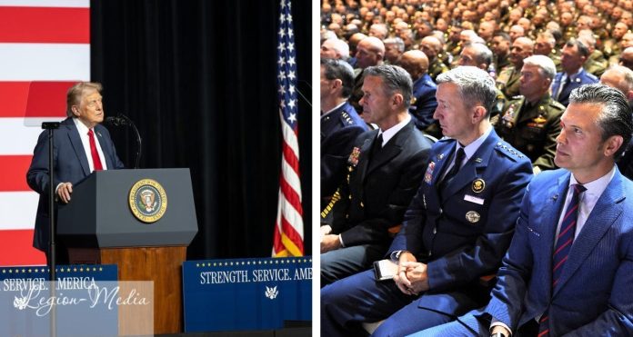 Berlin, Germany (Weltexpress). Around 800 US generals and admirals were ordered to Quantico (USA) on Tuesday from their US bases around the world to listen to hours of banal speeches by Trump and his Secretary of War Hegseth. Experts suspect that the harmless monster show was intended to cover up something else.